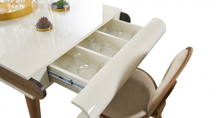 Masa FonksiyonuMasa tablası açılabilir özelliktedir. Bir kenarından açılır olup masa ölçüsü büyümekte diğer kenarında çekmeçe içinde kaşıklık mevcuttur.
